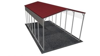 Standard RV carport features include the following: 14 gauge galvanized steel framing, 29 gauge metal roofing with twenty year Beckers paint system, framing spaced 5' center, double base rail, double legs, includes both roof and leg bracing for additional strength and stability. Concrete anchors, rebar anchors and mobile home anchors included in base price. Base leg height is 14' tall.